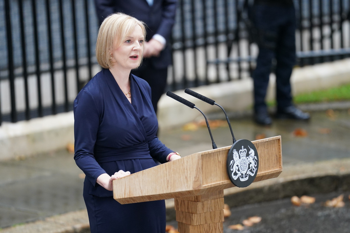 Truss ha hecho una declaración frente al número 10 de Downing Street 45 días después de convertirse en primera ministra británica
