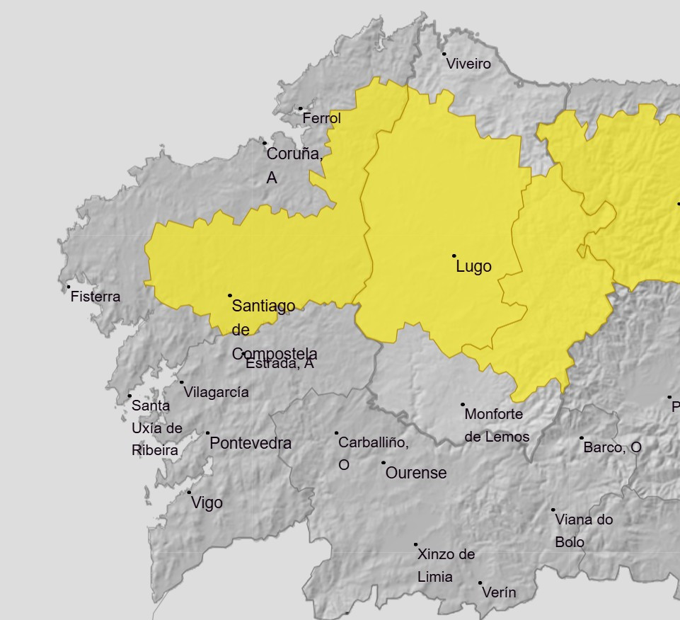 La jornada del próximo viernes presentará una inestabilidad creciente a medida que los vestigios de la borrasca Olivier se aproximan desde el sur. De hecho AEMET ha decretado alerta amarilla por riesgo de lluvias y tormentas en gran parte de las provincias de A Coruña y Lugo.
