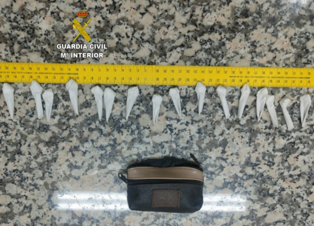 Según ha informado el Instituto Armado, los agentes dieron el alto al vehículo y encontraron en el interior 16 envoltorios plásticos, que contenía cocaína, con un peso de 12,80 gramos.