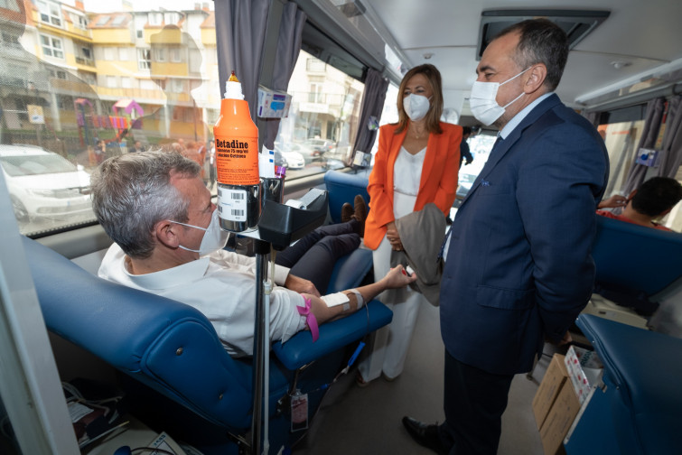 El presidente de la Xunta, Alfonso Rueda, predica con ejemplo y hoy ha donado en uno de los autobús de la Axencia de Doazón de Órganos e Sangue de Galicia (ADOS). La Axencia clama que necesita ayuda urgente porque tiene bajas las reservas de A+ y O+.