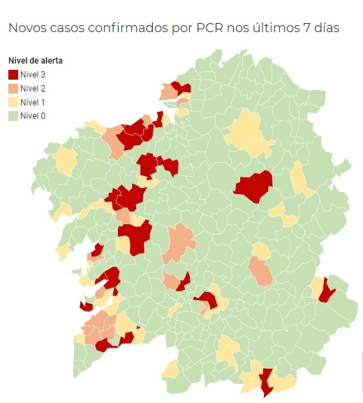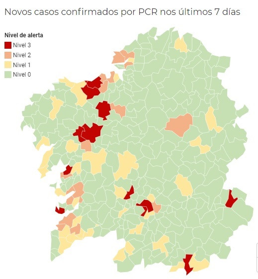 Vilanova de Arousa, O Porriño Marín, Oleiros, Mesía y Fene entran en alerta naranja. En Cangas hay varios positivos entre los jugadores del equipo de balonmano que ha suspendido su último partido.