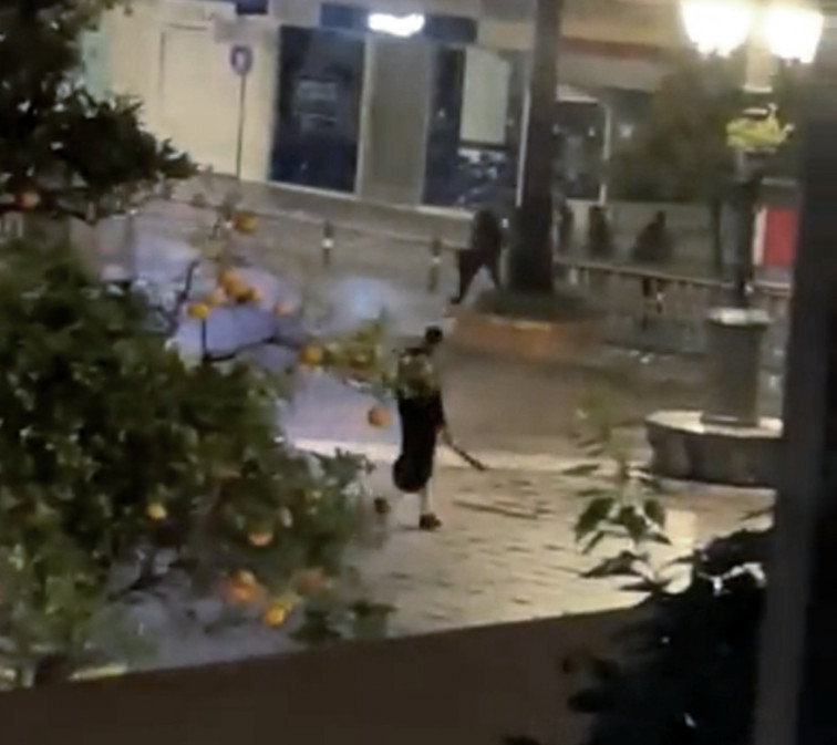 Varios usuarios han subido a sus redes sociales vídeos en los que se ve al sospechoso caminando con un gran machete por las calles de Algeciras y posteriormente siendo detenido por agentes de la Policía.