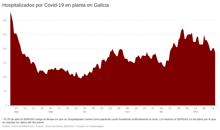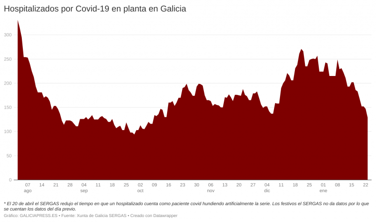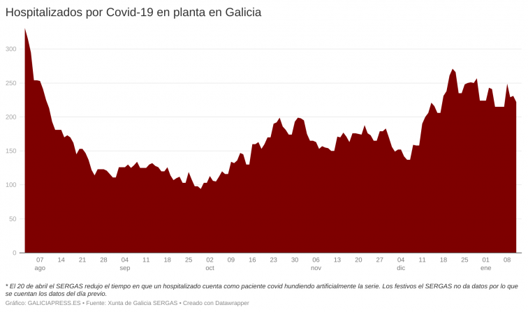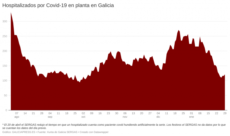 El SERGAS reporta más de 300 ingresados, un aumento considerable si tenemos en cuenta que el pasado viernes eran 293 los hospitalizados en una tendencia descendente.