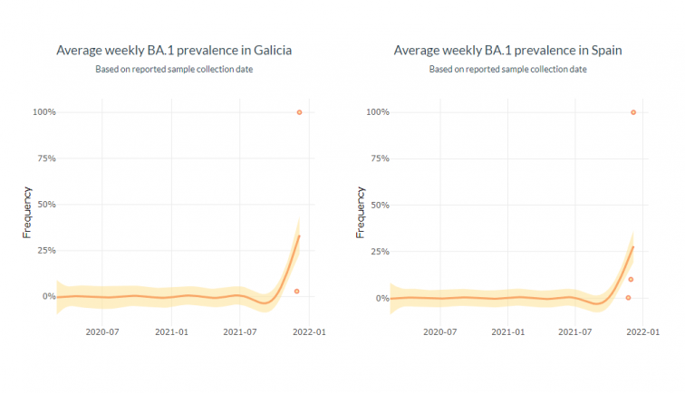 Son malas noticias, porque parece que el fuerte alza de positivos en Galicia no se explica, al menos no primordialmente por ahora, por Ómicron. Esta cepa es más contagiosa y pronto será dominante en el país, como ya sucede en otras zonas de Europa.