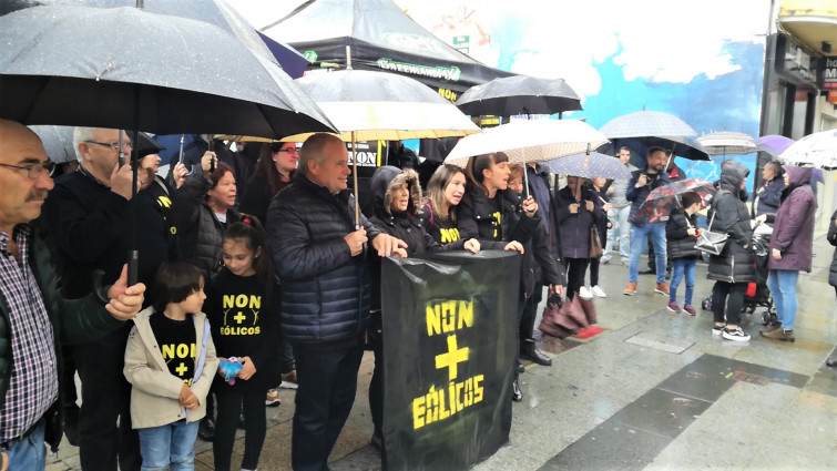 La 'Plataforma Contra Eólicos Bustelo-Campelo-Toural' concentró a decenas de vecinos en el municipio carballés para protestar contra los tres parques eólicos proyectados en los municipios de Carballo, Coristanco y Santa Comba.