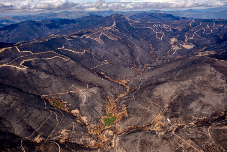 Un mes después de que el devastador incendio de Larouco calcinase por completo la aldea de San Vicente de Leira, en Vilamartín de Valdeorras, sus vecinos alzan la voz. A través de una carta abierta, no solo denuncian el "abandono institucional" y reclaman un plan integral de reconstrucción, sino que lanzan una seria advertencia: la llegada de las lluvias otoñales podría provocar escorrentías y corrimientos de tierra que amenazan a los núcleos de población situados monte abajo, como San Miguel de Outeiro o la propia villa de Vilamartín.
