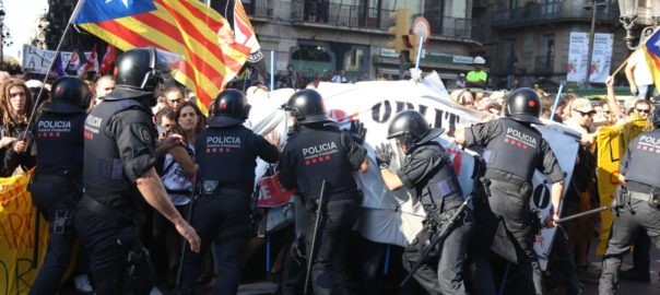 Poco antes de las 11 ha habido una carga policial para contener la movilización independentista, que ocupa la acera de la Via Laietana más próxima a la plaza Sant Jaume, que es donde han pasado la noche muchos independentistas.