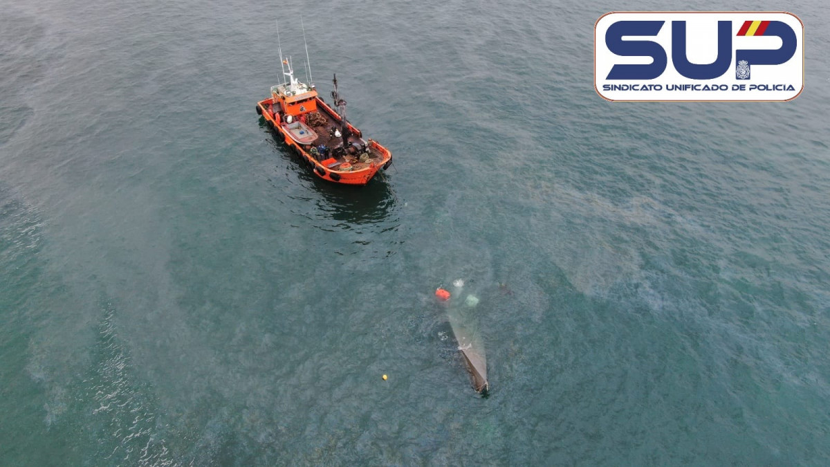 ACTUALIZADO: El narcosubmarino, que se resiste a salir, a vista de dron