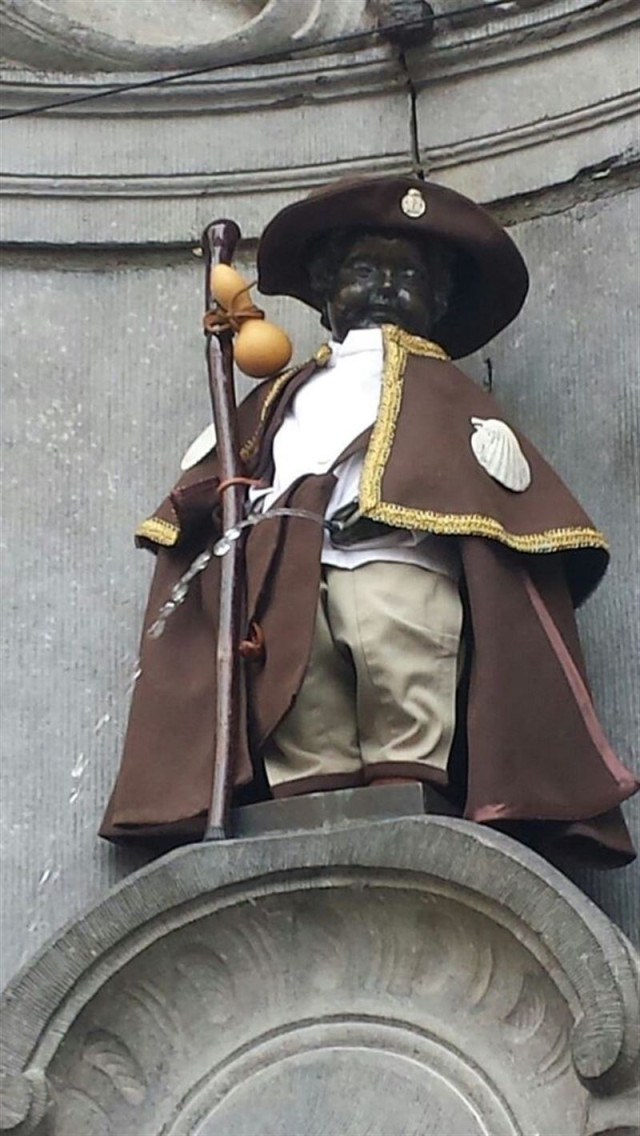 La famosa estatua de Bruselas Manneken Pis vestirá el tradicional traje de peregrino del Camino de Santiago hasta finales de mes de mayo 2015. La iniciativa está promovida por la Asociación belga de Amigos del Camino de Santiago, que recibió en reconocimiento a los servicios prestados a la tradición y folklore de Bruselas el diploma de la orden de Amigos del Manekken Pis.