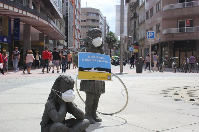 O obxectivo desta acción, que consistiu na colocación de máscaras nas principais estatuas da cidade do Lérez, é mostrar a "situación de altos niveis de contaminación producidos pola pasteira e a fábrica de cloro".