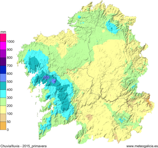 Tras un inverno seco, a primavera continuou na mesma tónica, cunha porcentaxe de precipitación un 37 % inferior ó valor climático no período de referencia 1971-2000. Marzo foi seco en xeral, pola persistencia das condicións anticiclónicas, o que se reflectiu tanto na cantidade de precipitación coma no número de días de chuvia.