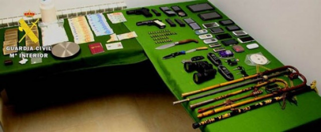 Froito das detencións e os rexistros, foi intervido diverso material, desde unha pistola a tres navallas, seis bastóns e diversas cantidades de droga, entre elas 1,3 quilos de haxix. Tamén foron intervidas tres carteiras do tipo policial, 835 euros en billetes de curso legal e doce terminais de telefonía móbil.