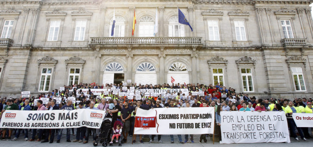 "Por primeira vez na historia da Deputación, unha presidenta inaugura o seu mandato nun pleno cunha manifestación", destacou Moldes, ao tempo que numerosos traballadores de Ence, Elnosa e empresas auxiliares da fábrica pasteira se concentraban ás portas da institución provincial con pancartas con lemas como "Ence Pontevedra concesión xa", "O sector do transporte, con Ence", "Pola defensa do emprego no sector forestal" e carteis coa mensaxe "Si a Ence".