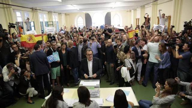 Las colas en los colegios electorales catalanes auguran una alta participación