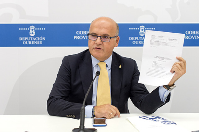 O presidente da Deputación de Ourense, mostra os medios de comunicación a sentencia que libera a istutución de un pago de 10.123.053,03, reclamados polo Ministerio de Facenda