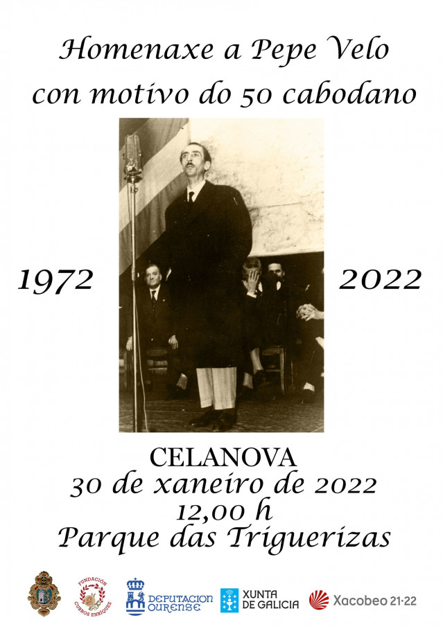 El Ayuntamiento de Celanova, en colaboración con la Diputación de Ourense y la Consellería de Cultura, organizará este domingo 30 de enero un homenaje al activista político, social y cultural Pepe Velo con motivo del 50 aniversario de su fallecimiento.