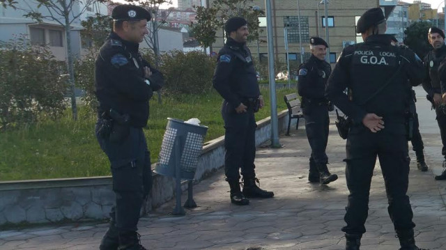 La Policía Local se desplegó en la mañana de este domingo en Bouzas para impedir el montaje de los puestos del mercadillo para hacer cumplir la orden municipal de prohibir esta feria tras los enfrentamientosentre los vendedores ambulantes de etnia gitana.