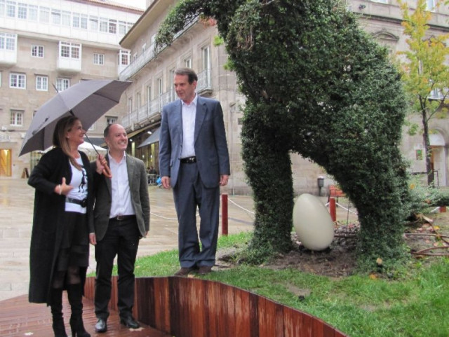 "Esto es lo más maravilloso de Vigo, el "Dinoseto", proclamó el alcalde tras retirar el envoltorio que cubría el huevo situado bajo la figura decorativa más fotografiada de la ciudad.