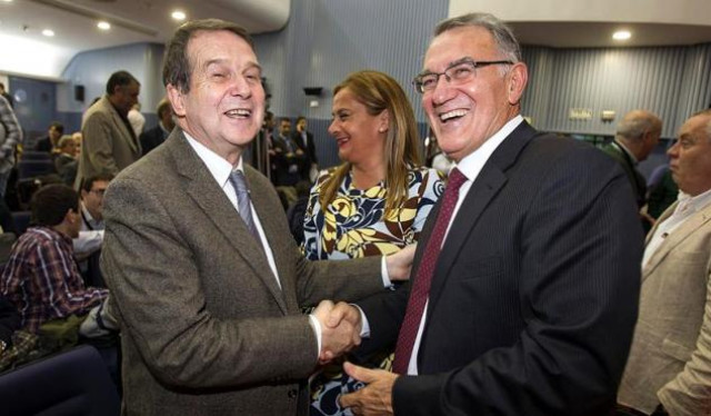Alfredo García, á dereita, e felicitado polo presidente da Femp, Abel Caballero.