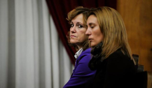 A alcaldesa de Melón, María Cristina Francisco (á esquerda), hoxe durante a vista oral