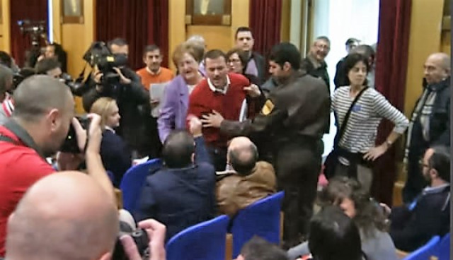 Momento en que son insultados los diputados provinciales por conocidos simpatizantes del PP