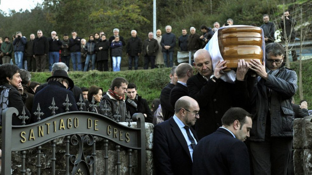 Despois do fin da misa, na que algúns poemas do buque insignia intelectual galego, o caixón con seus restos mortais foi enterrado foron lidas mentres os participantes aplaudiron visiblemente emocionado.