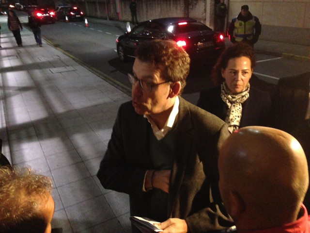 O presidente da Xunta e do PP galego, Alberto Núñez Feijóo, atendeu a tres mariñeiros do cerco antes de participar nun mitin na localidade coruñesa de Carballo, a capital de Bergantiños, onde a sala quedou pequena para recibir veciños de toda a bisbarra.