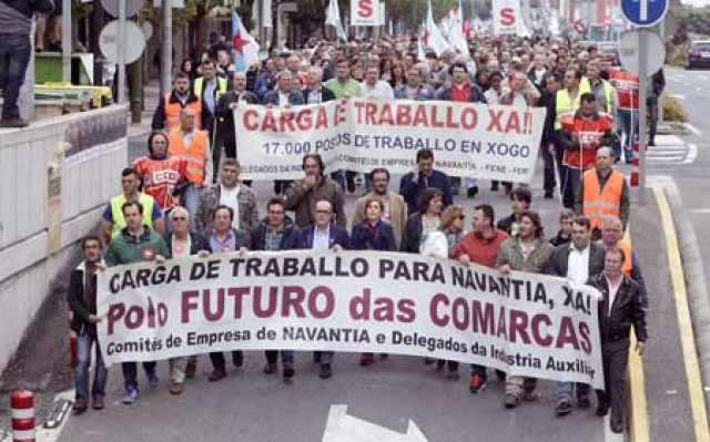 Indicou que o obxectivo "fundamental" é a carga de traballo, "non só para o persoal de Navantia, senón para os miles de compañeiros da comarca que están no paro", ao que engadiu que a de hoxe "non vai ser a última manifestación, por desgraza" e que esperan que "non volva gobernar o PP e o que o faga no seu lugar poida darlle un envorco rotundo á situación".