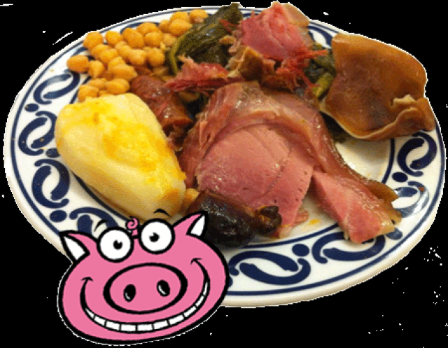 Imagen del Cocido ofrecido por el Gastrobar San Miguel de Ourense, con vinos de Ribeira Sacra, filloas y orejas de postre