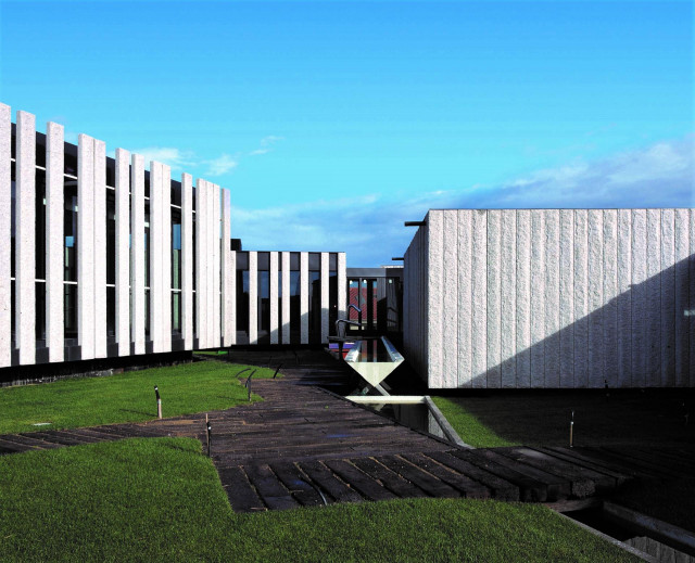 El arquitecto ha puesto como ejemplo en su intervención en China dos proyectos singulares desarrollados por su estudio, en los que ha utilizado la piedra como protagonista desde una óptica contemporánea: las Pousadas de Ribadumia y Armenteira. Son dos obras con una arquitectura atractiva, humanizada y accesible, que han sido publicadas en prestigiosas revistas internacionales.