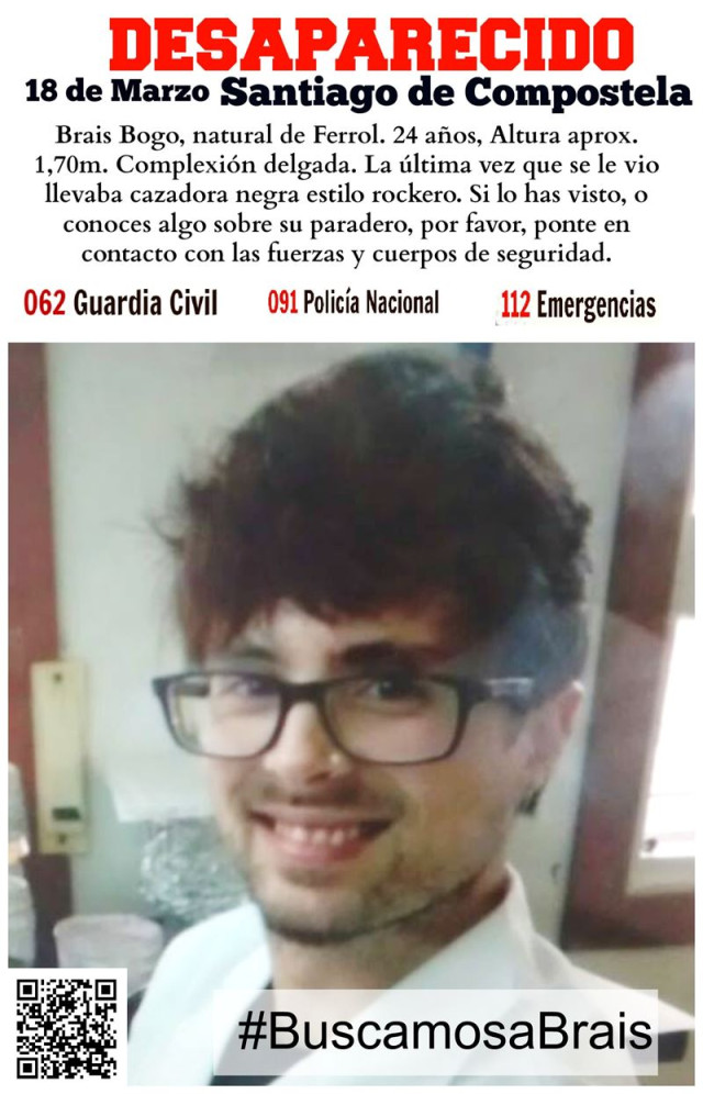 Una amiga de Brais, Andrea Carrasco, ha hecho un "llamamiento público" para que la fotografía del joven "pueda llegar a toda España", dado que entre la familia y el entorno más cercano "cobra fuerza la hipótesis de que él pueda haberse ido por su propio pie".