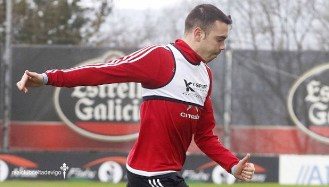 Aspas ya reanudó los entrenamientos con el resto del grupo este lunes y espera recibir el alta médica en los próximos días, superada la microrrotura fribilar que sufrió en el bíceps femoral derecho.