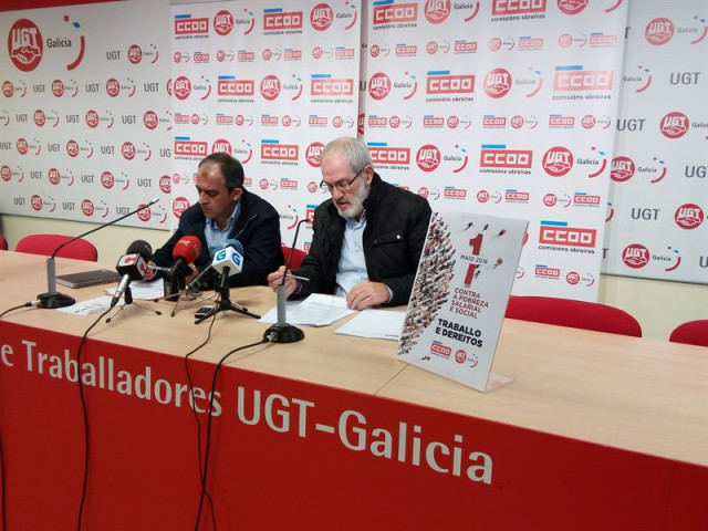 CCOO e UXT levarán a cabo un acto central en Vigo e outras manifestacións en A Coruña, Ferrol, Santiago, Lugo, Viveiro, Ourense, Arousa y Pontevedra. A CIG, pola súa banda, convoca protestas en Vigo, A Coruña, Pontevedra, Ferrol, Santiago, Lugo, Ourense, Ribeira, Foz, Vilagarcía, A Estrada, Cee e Cangas.