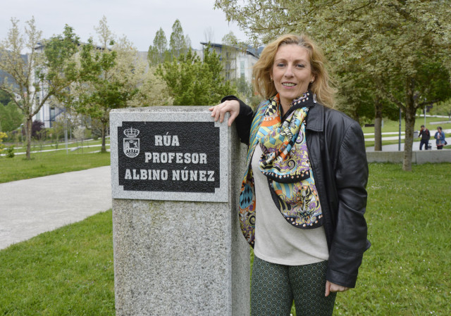Manuela Maseda, diante da rúa no campus de Ourense, de Albino Nuñez