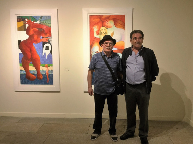 O Artista Cesar Prada, e o escritor Edelmiro Vázquez Naval, colaborador no catálogo da exposición