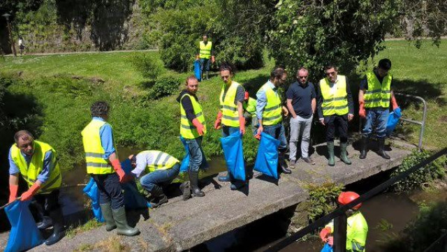 Un nutrido grupo de veciños do compostelán barrio de Galeras uniron os seus esforzos para limpar o río Sarela ao seu paso por Santiago, entre Santa Isabel e o Carmen, retirando uns 200 kilos de lixo, na súa maior parte restos de plásticos, envoltorios e toalliñas sanitarias.
